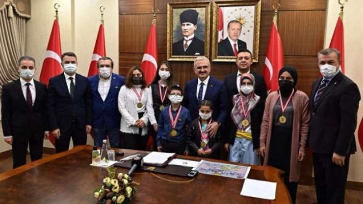 Konuşmaların ardından Vali Karaloğlu konuşma sonrasında, edebi ve görsel eserler alanlarında dereceye giren öğrencilere madalyalarını ve hediyelerini verdi.