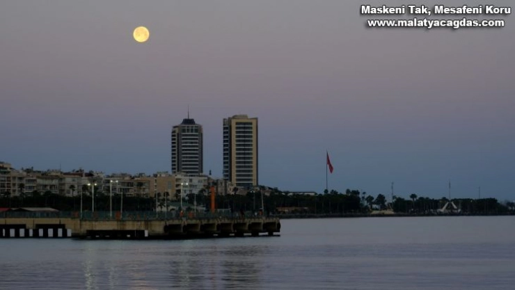 Hatay'ın İskenderun ilçesinde Süper Ay'ın körfez üzerinde batışı kartpostallık görüntüler oluşturdu.
