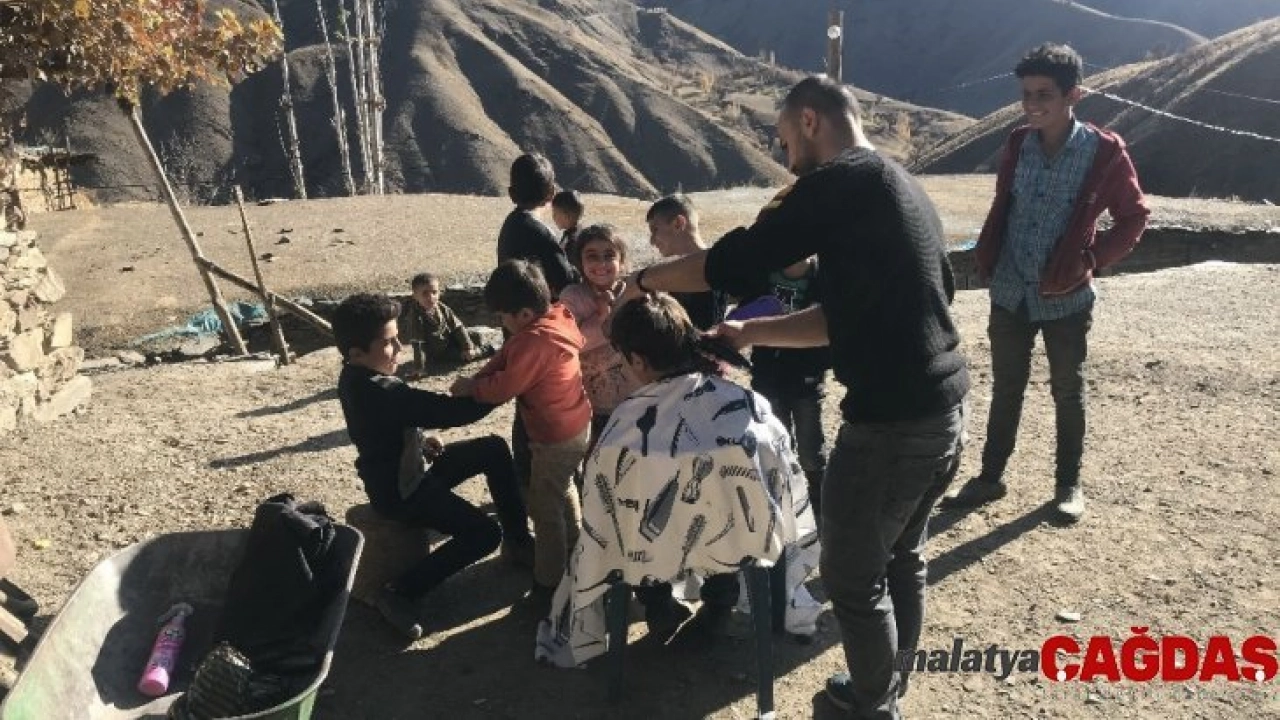 Bitlis’in Hizan Bahçelievler Mahallesi Muhtarı ile bir berber, sosyal sorumluluk projesi kapsamında ’traşsız köy çocukları kalmasın’ sloganıyla köy köy gezerek çocukları traş ediyorlar.