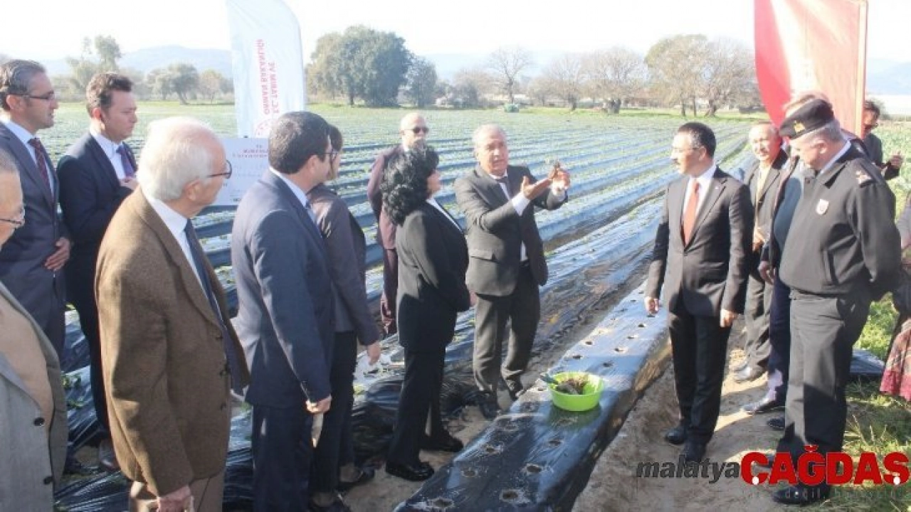 Vali Civelek başta olmak üzere tüm protokol mensupları 12 üreticiye çilek üretiminde kullanılan gübrelerini takdim ederek, çilek dikmek üzere tarlaya geçildi. İl Müdürlüğü teknik personelleri tarafından fide dikimi gösterilerek bilgi verildi. Vali Esengül Civelek dikim yaparken; "Hiçbir tarım ürününde dekardan 50-60 bin TL. gelir elde edilemediğini, şu ana kadar kurulan 300 dekardan Muğla ekonomisine yıllık 20 milyon TL. katkıda bulunmaya başladıklarını" ifade etti.