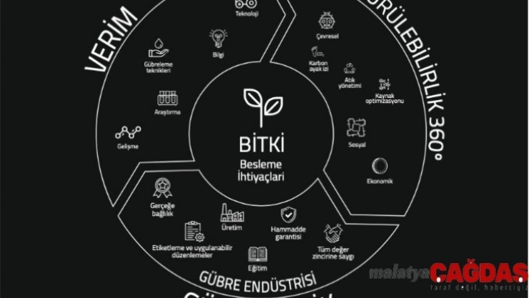 “Verim, teknoloji, bilgi, gübreleme teknikleri, araştırma ve geliştirmeden oluşmaktadır. 360 derece sürdürülebilirlik; çevresel etkiler, karbon ayak izi, atık yönetimi, kaynak optimizasyonu, sosyal ve ekonomik etkenleri ifade ediyor. Güvenirlilik ise tamamen gübre endüstrisini kapsayacak şekilde gerçeğe bağlılık, etiketleme ve uygulanabilir düzenlemeler, üretim, eğitim, hammadde garantisi ve tüm değer zincirine saygı alt başlıklarından oluşuyor.”