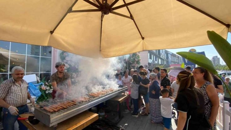 Adana'da bir güzellik merkezi sahibi, 1 tonluk dana kesip iş yerinin önünde dev mangal kurup vatandaşlara kebap ziyafeti çektirdi.