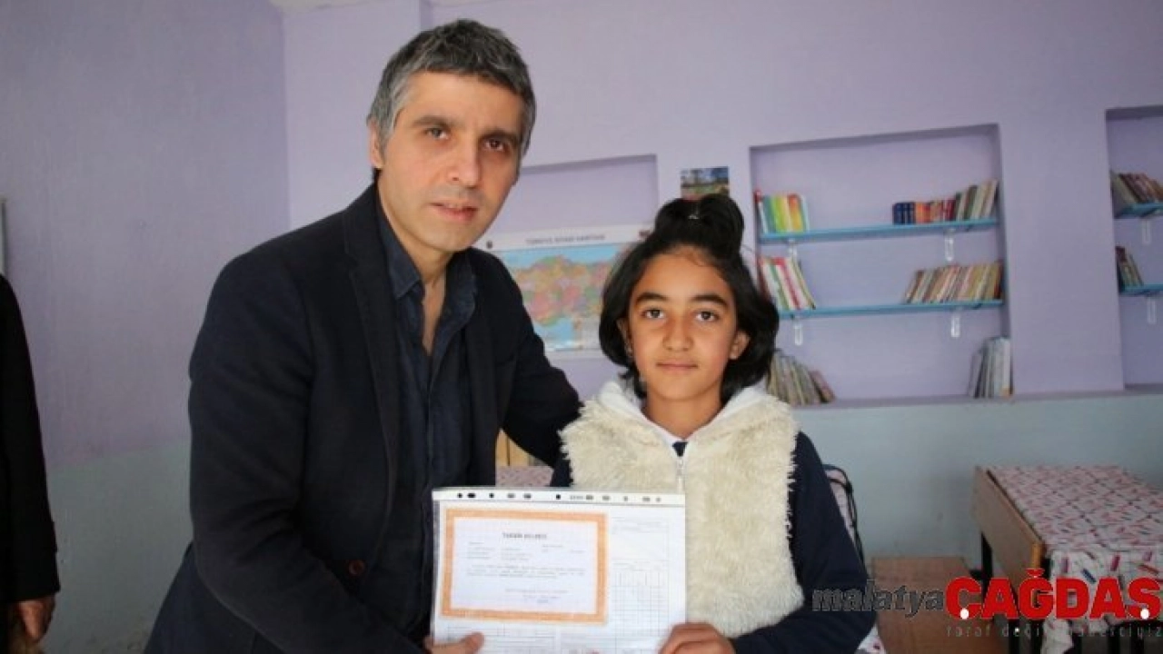 10 öğrencisi bulunan okulda Kaymakam ve Milli Eğitim Müdürü çocuklara karne hediyesi olarak çanta içersinde kırtasiye malzemesi ve tatilde okumaları için hikaye kitaplarının yanı sıra kışlık bot hediye ettiler.