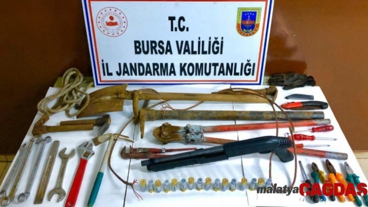 Bursa İl Jandarma Komutanlığına bağlı ekipler tarafından yapılan yol uygulamasında ’dur’ ihtarına uymayan şüpheli araç kaçmaya başladı. Ekipler şüpheli aracı ve içerisindeki şüphelileri tespit edip yakalamak için özel bir ekip kurdu. Ekip 100 kilometrelik alan içerisinde bulunan 100’e yakın güvenlik kamerasını tek tek inceleyip aracın çalıntı olduğunu belirledi. Çalındığı yere giden ekipler buradan yola çıkarak adım güvenlik kameralarını inceleyip aracın esas sahibinin İzmir’de olduğunu tespit etti. Hırsızların sonrasında aracın plakasını değiştirip modifiye ederek gezdiklerini belirleyen ekipler aracı teknik takibe aldı. Aracı ve içerisindeki şahısları güvenlik kamerası ve PTS/MOBESE sistemiyle belirleyen ekipler şüphelilerin Osmangazi ilçesinde saklandıkları ikametlerine baskın yaptı. İkamette bulunan A.G., Y.K., E.K. ve S.A. yakalanarak gözaltına alındı. Şüphelilerin ikamet ve iş yerlerinde yapılan aramalarda ise, 1 adet Ruhsatsız av tüfeği, uyuşturucu madde kullanım aparatı, suçta kullanılan 2 adet (biri Milli Parklara ait Hizmet alımı şeklinde kullanılan araç) araç, Hırsızlık olayları esnasında kullanılan keski, pense, anahtar takımı ve eldiven ele geçirildi. Şüphelilerin daha önceden de BESOB sanayi bölgesinde iş yerlerinden Enerji Nakil ve Haberleşme Kablosu çaldıklarını tespit eden ekipleri karakoldaki ifadelerinin ardından şüphelileri adliyeye sevk etti.