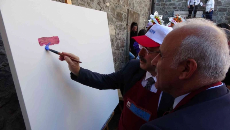 Açılış konuşmalarının ardından Başkan Zorluoğlu ve Başkan Genç, fırçalarını eline alarak tuvale Trabzonspor’un logosunu ve Trabzon yazısını çizdi.