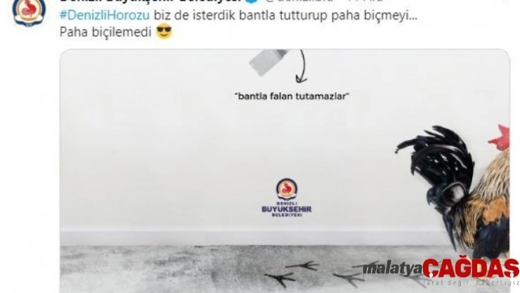 Belediyenin sosyal medya hesabından yaptığı paylaşımda ‘Bantla falan tutamazlar’ yazısı ile yürüyen horoz fotoğrafı ile çok sayıda yorum aldı. Denizli Büyükşehir Belediyesi yaptığı paylaşımda Denizli horozu etiketi ile “Biz de isterdik bantla tutturup paha biçmeyi paha biçilemedi” paylaşımını yaptı. Kahramanmaraş’ın Elbistan Belediyesi ise Denizli’nin paylaşımına "Bantlayamadık ama kucakladık" şeklinde kucağında lahana tutan bir vatandaşlı fotoğraf ile gönderme yaptı. Sosyal medya kullanıcılarının da büyük beğenisi kazandı. Paylaşıma çok sayıda sosyal medya kullanıcısı farklı sosyal paylaşım platformlarında da paylaştı.