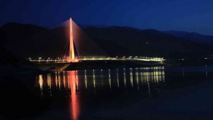 16 şehri birbirine bağlayan Kömürhan Köprüsü ışıklandırmasıyla görsel şölen sunuyor