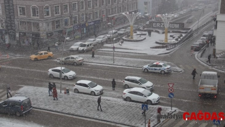 Sabah saatlerinden itibaren etkili olan kar yağışı Erzurum'u yeniden beyaza bürüdü.