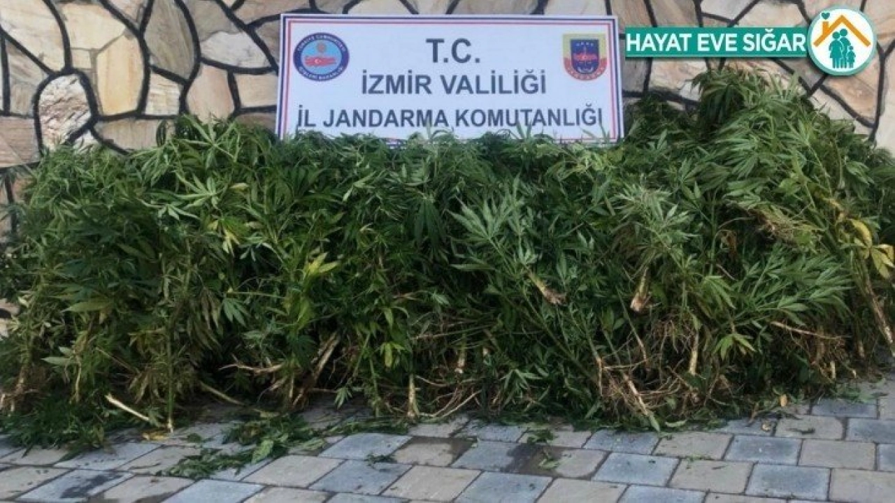 İzmir’in Torbalı ilçesinde jandarma ekiplerince yapılan operasyonda bir evin bahçesinde 203 kök Hint keneviri ele geçirildi.