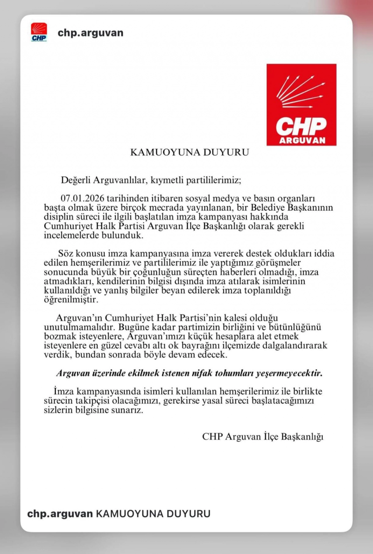 Öte yandan süreçle ilgili kamuoyunda yer alan bazı yeni iddialar üzerine, CHP Arguvan İlçe Başkanı Sayın Hüseyin Üstün’ü arayarak, ilçe başkanlığı adına sosyal medya ve yerel basında yayımlanan metinlerin bilgisi ve onayıyla hazırlanıp hazırlanmadığını kendisine sordum. Sayın Üstün, bu metinlerden haberi olmadığını, ifadelerin kendisine ait olmadığını ve kimseye röportaj vermediğini açıkça ifade etmiştir.