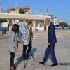 Didim İlçe Milli Eğitim Müdürü Recep Akdemir Atatürk heykeline çelenk koymasının ardından bir dakikalık saygı duruşunda bulunuldu ve akabinde İstiklal Marşı okundu.