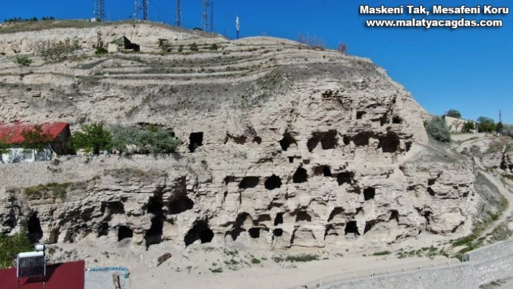 Sivas'ın Gürün ilçesinde bulunan apartman görünümlü 4 bin yıllık 'Hitit mağara evleri' çevre düzenlemesiyle yeni bir görünüme kavuşacak.