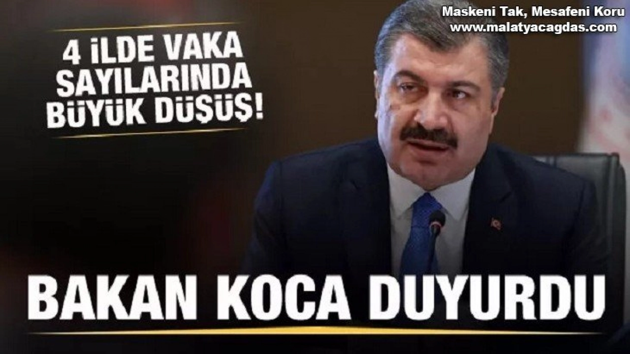 Sosyal medya hesabından açıklama yapan Bakan Koca, ''BURSA, KONYA, KAYSERİ, TEKİRDAĞ illerimizde salgının seyri ile ilgili tedbirleri ele aldık. Günlük vaka sayıları düşmeye devam ediyor. Kısıtlama ve tedbirlere uyum netice veriyor. Mücadeleye ısrarla devam edelim.'' ifadelerini kullandı.