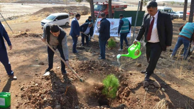 Hatay'ın Kırıkhan ilçesinde 600 fıstık çamı fidanı toprakla buluştu.