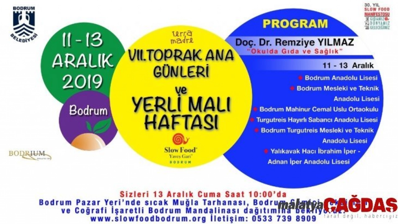 7. Toprak Ana Günleri ve Yerli Malı Haftası yaklaşıyor. Slow Food Yaveş Gari Bodrum Birliği'nin Bodrum Belediyesi'nin destekleriyle düzenlediği Toprak Ana Günleri ve Yerli Malı Haftası, bu sene 11-13 Aralık tarihleri arasında gerçekleştirilecek.