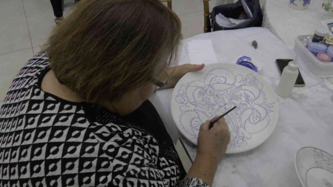 Kayseri'de Kocasinan Halk Eğitim Merkezi tarafından Hayat ve Öğrenme Haftası çerçevesinde 'Yıl Sonu Ürün Sergisi' açılışı yapıldı. 4 sene önce çini boyama sanatı alanında kursa başlayan ve kursa hala devam eden 70 yaşındaki Nermin Barlas da yaptığı eserlerini sergiledi.
