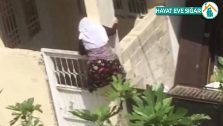 Adıyaman'da Korona virüsünden dolayı evde kalmaktan sıkılan 75 yaşındaki yaşlı kadının, duvara tırmanarak caddeye çıkma girişimi görenleri hayrete düşürdü.