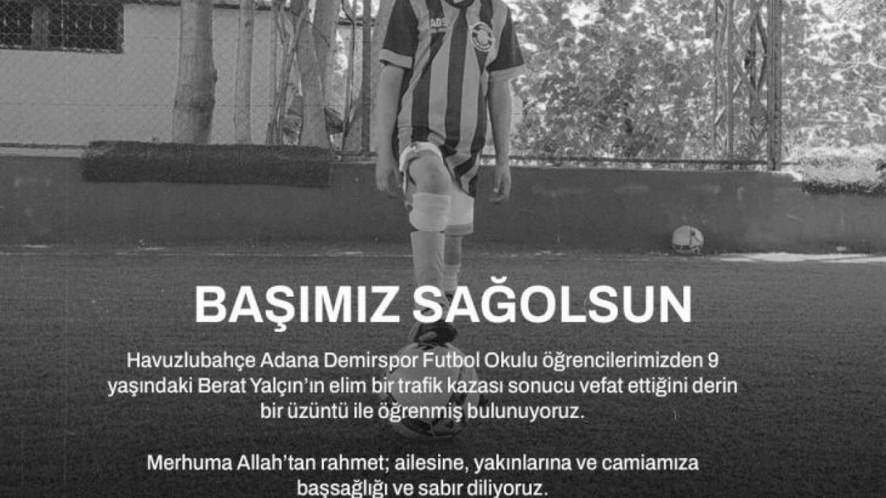 Havuzlubahçe Adana Demirspor Futbol Okulu öğrencilerinden 9 yaşındaki Berat Yalçın Konya'da geçirdiği trafik kazasında hayatında kaybetti.