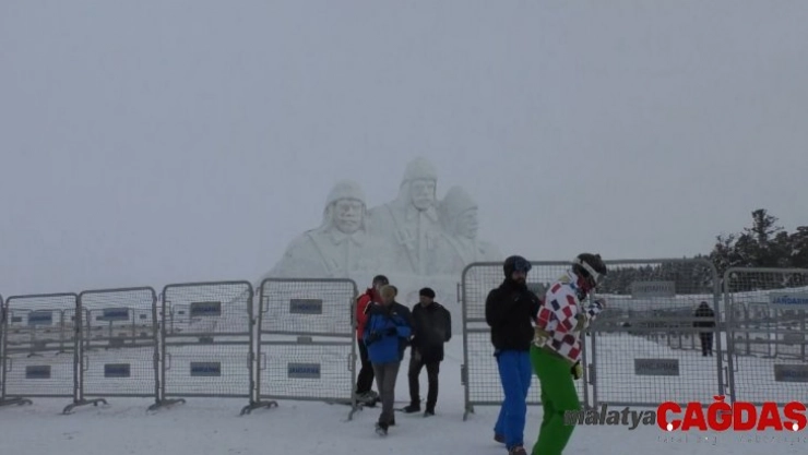 Cıbıltepe Kayak Merkezi’nin 1. etap oteller bölgesine yapılan kardan şehit heykelleri için 15 kilometre uzaklıktaki Handere mevkisinden kar taşındı.