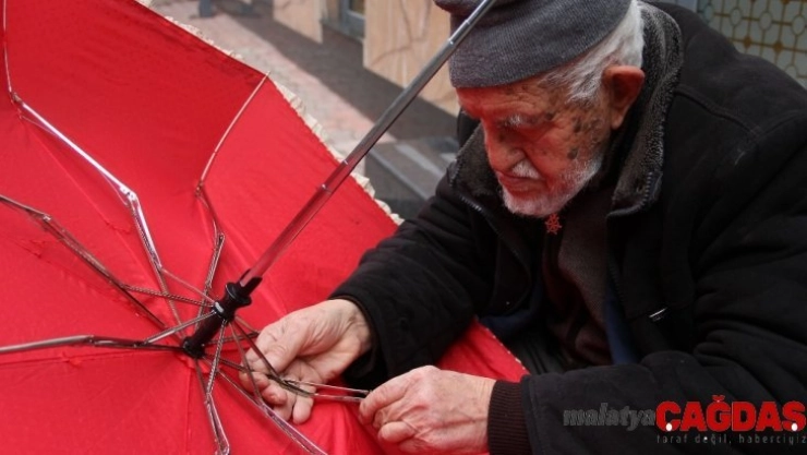 - 90 yaşında gözlük kullanmadan şemsiye tamir ediyor