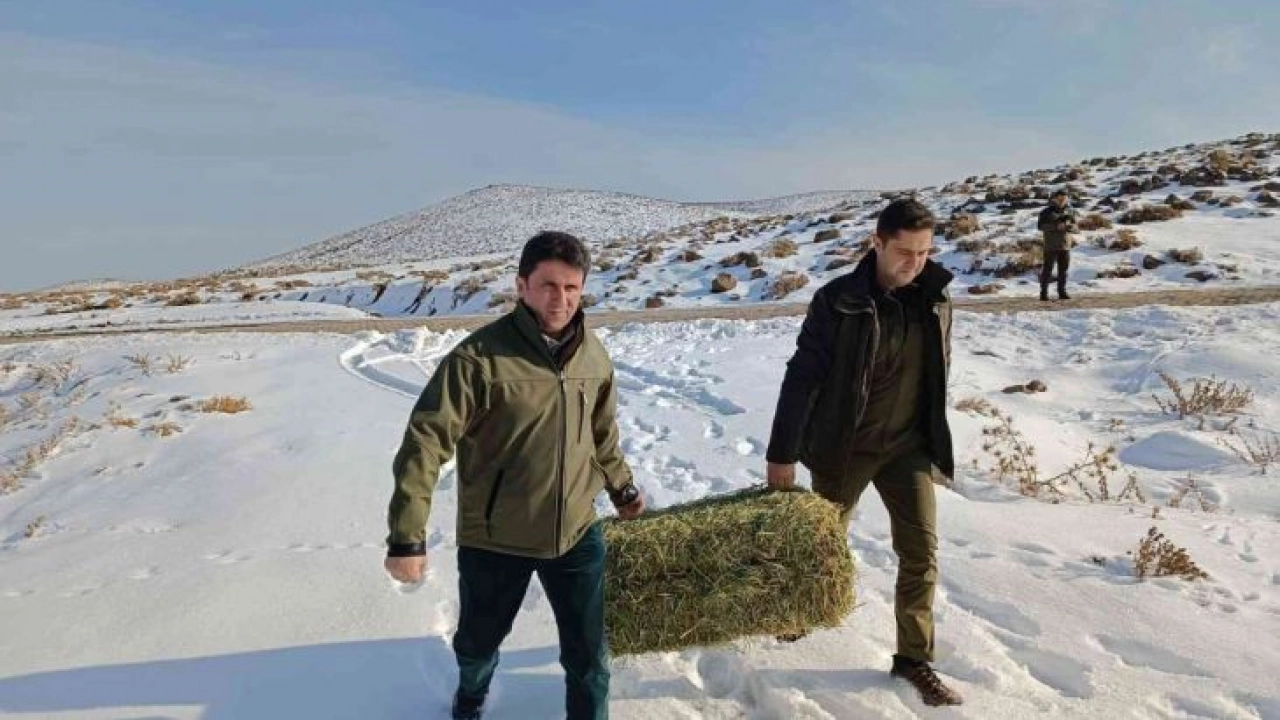 Aç kalan yaban hayvanları için yem bırakıldı