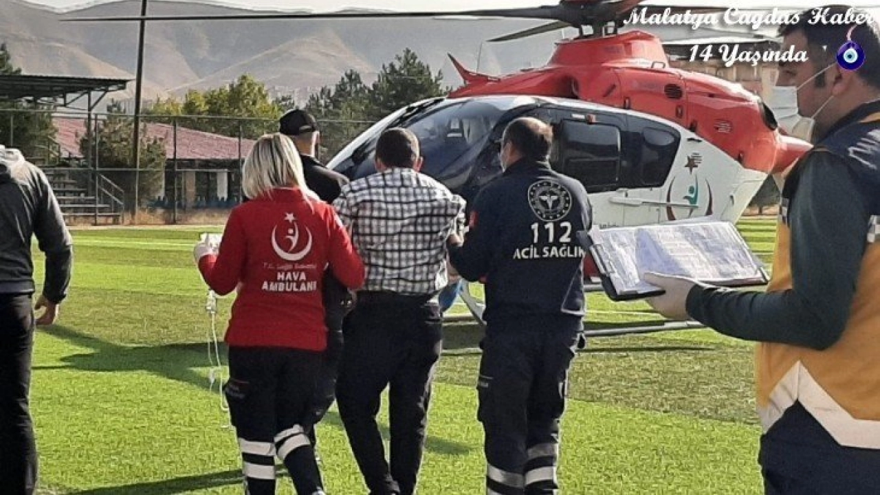 Malatya’nın Darende ilçesinde parmağını kıyma makinesine kaptıran hasta ile yüksek tansiyon hastası kadının imdadına 112 hava ambulansı yetişti.