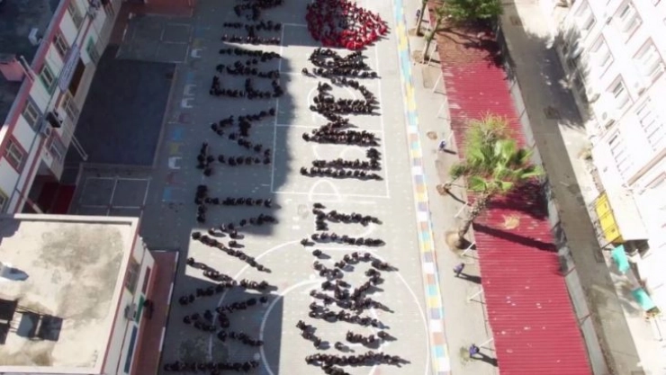 Öğretmenlerin desteğiyle hazırlanan koreografi havadan da görüntülendi.