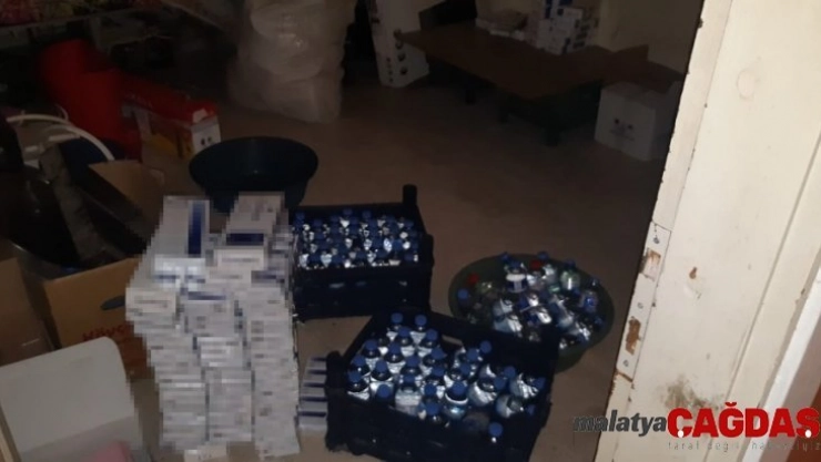 Adana'da bir markette yapılan aramada yarım litrelik şişelerde 94 adet kaçak boğma rakı ile 550 paket sigara ele geçirildi.