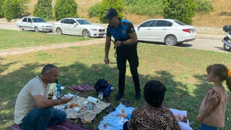Adana’da polisler mesire alanlarında piknik yapan vatandaşları keneye karşı uyardı.
