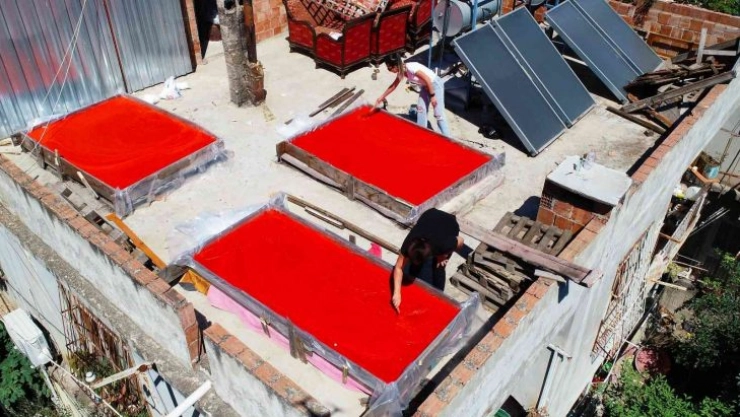 Adana'da salça sezonu başladı, damlar kırmızıya boyandı