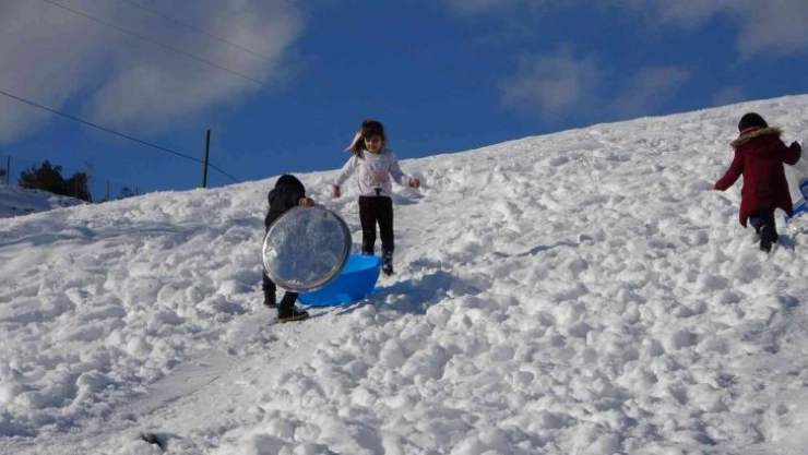 Yiğit Çetin ise karnesinin çok iyi olduğunu ve çok eğlendiğini belirterek, "Tepsi ile kayıyorum. Çok eğleniyorum kar çok güzel” dedi.