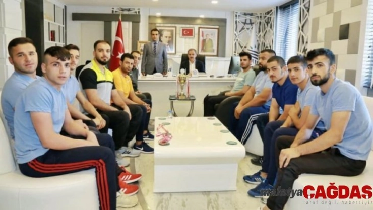 Ankara'da düzenlenen 'Türkiye Büyük Erkekler 2. Lig Grekoromen Güreş Şampiyonası'nda takım halinde dereceye girerek 1. Lig'e yükselen Adıyaman Belediyesporlu güreşçiler, başarılarını Belediye Başkanı Süleyman Kılınç'la paylaştı.