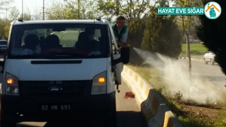 Adıyaman Belediyesi Park ve Bahçeler Müdürlüğü ekipleri, şehir merkezindeki orta refüjlerde bulunan yabani otları imha ediyor.