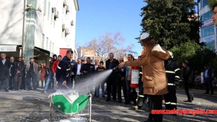 Belediye bahçesinde gerçekleştirilen tatbikatta, belediye personeline deprem anında binadan tahliye, yangının çıkış sebebi, yangına müdahale, yangın esnasında yapılması gerekenler, yangından ve depremden kaçış yöntemleri, yangın merdiveninin kullanım şekli konularında teknik bilgiler veren itfaiye müdürlüğü ekipleri, daha sonra belediye bahçesinde yaktıkları ateş üzerinden tatbikata katılanlara anlattıklarını uygulamalı olarak gösterdi.