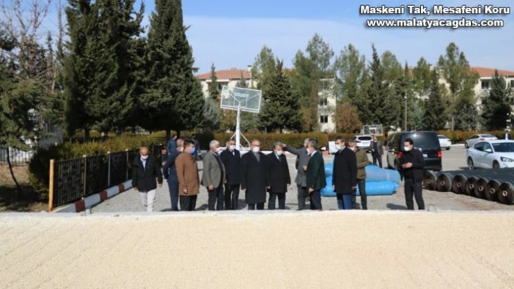 Sürdürülen çalışmaları yerinde incelemek için Adıyaman Spor Lisesini ziyaret eden Belediye Başkanı Süleyman Kılınç ve Başkan Yardımcıları Ramazan Oruç ile Mithat Töken’e, İl Milli Eğitim Müdürü Ahmet Alagöz, milli eğitim müdür yardımcıları, şube müdürleri ve okul yöneticileri eşlik etti.