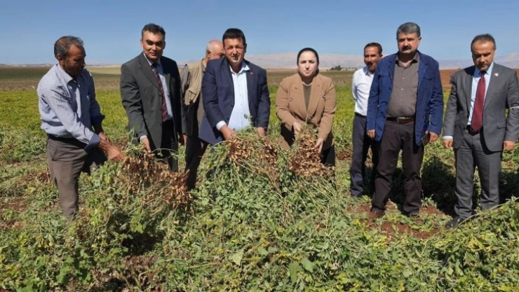 Besni Kaymakamı Nazlı Demir, Besni Ziraat Odası Başkanı İsmail Sümer, ilk kez yapılan yer fıstığı hasadına katılarak, çiftçi Yakup Özbay’dan bilgi aldı. Bir kuruyemiş firmasıyla sözleşme imzalayan çiftçi, bin 50 dönüm kuruyemiş, 150 dönüm ise tohumluk yer fıstığı ekti.