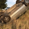 Adıyaman'ın Kahta ilçesinde yoldan geçen keklik sürüsüne çarpmak istemeyen ototmobil şarampole yuvarlandı.