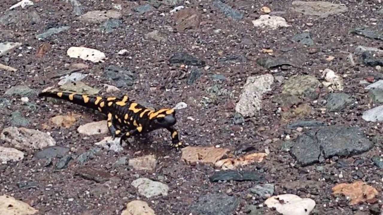 Adıyaman’ın Sincik ilçesinde türüne az rastlanan sarı benekli semender görüldü.