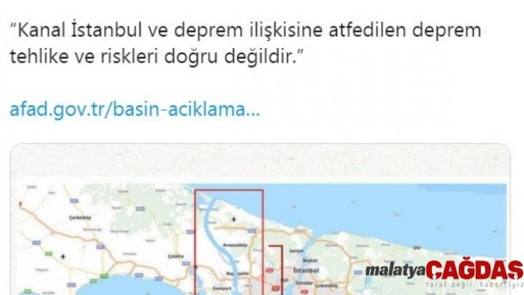İçişleri Bakanlığı Afet ve Acil Durum Yönetimi Başkanlığı (AFAD), Kanal İstanbul Projesi'nin depremle ilişkilendirilmesine yönelik, 'Kanal İstanbul ve deprem ilişkisine atfedilen deprem tehlike ve riskleri doğru değildir' açıklamasını yaptı.