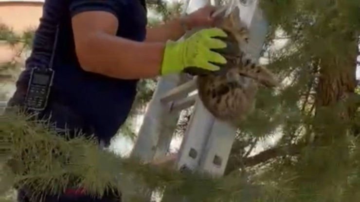 Van’ın Tuşba ilçesinde ağaçta mahsur kalan yavru kedi itfaiye ekipleri tarafından kurtarıldı.