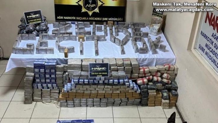Ağrı'da uyuşturucu veya uyarıcı madde ticareti yapan suç organizasyonlarına yönelik yapılan operasyonda 358 kilo 266 gram eroin ele geçirildi.