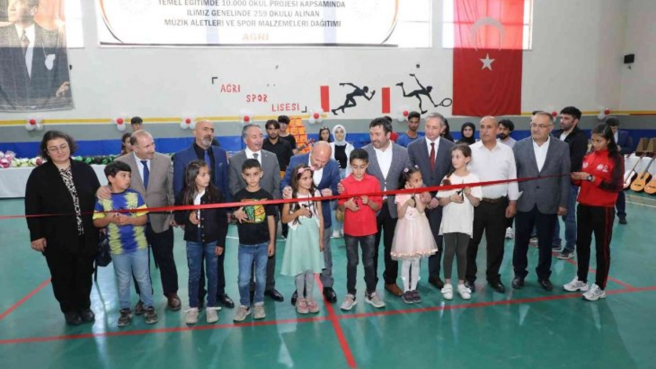 Ağrı Vali Dr. Osman Varol'un katılımıyla 'Temel Eğitimde 10 Bin Okul' projesi çerçevesinde spor malzemesi ve enstrüman dağıtım töreni düzenlendi.