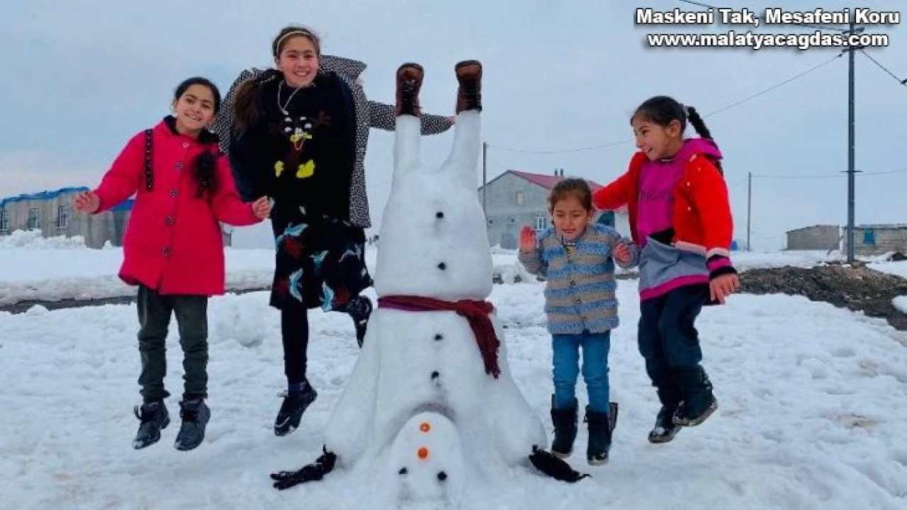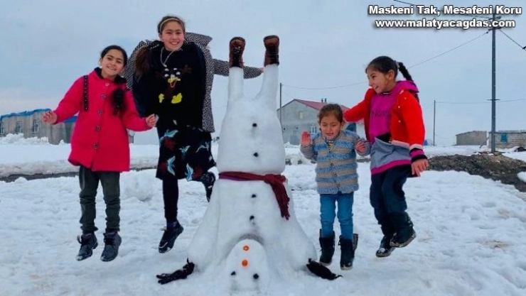 Ağrı'da ters duran kardan adam yapan çocuklar güldürdü