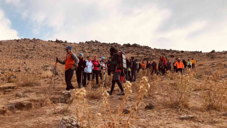Doğubayazıt Nuh’un Gemisi Arama Kurtarma Derneği, kadına yönelik şiddete dikkat çekmek amacıyla “Kadına Şiddete Hayır” sloganı altında 58 kadınla 3 dağın zirvesine çıkmak için yola koyuldu.