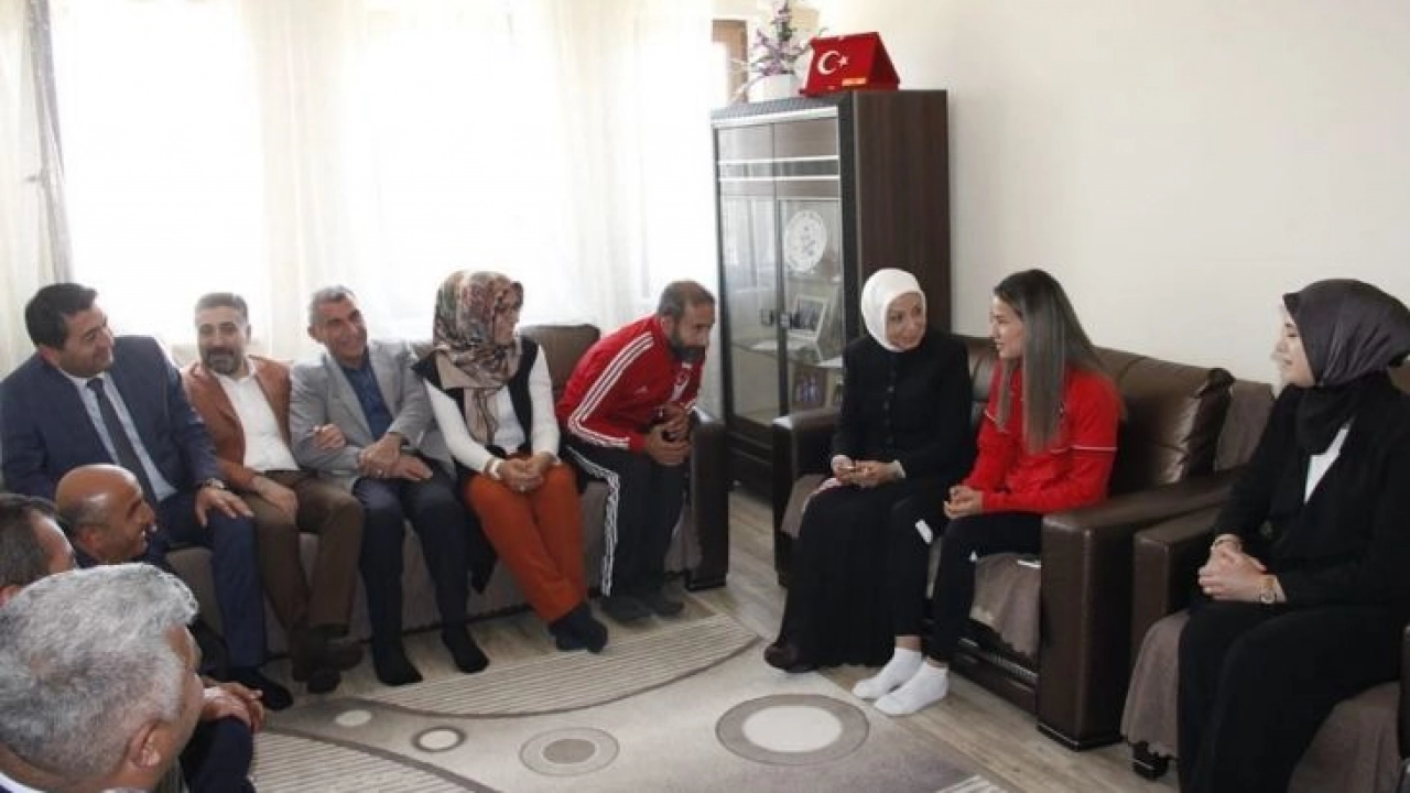 AK Parti MKYK Üyesi ve Malatya Milletvekili Öznur Çalık beraberindeki partililerle Dünya Kadınlar Boks Şampiyonası'nda altın madalyaya uzanan milli boksör Hatice Akbaş'ı evinde ziyaret ederek tebrik etti.