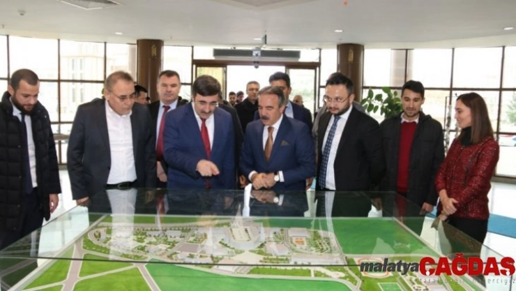 AK Parti Dış İlişkilerden Sorumlu Genel Başkan Yardımcısı Cevdet Yılmaz’ı Nevşehir Hacı Bektaş Veli Üniversitesini ziyaretlerinde NEVÜ Rektörü Prof. Dr. Mazhar Bağlı, Rektör Yardımcıları Prof. Dr. Fatma Karipcin, Prof Dr. Erdoğan Çiçek ve Genel Sekreter Nihat Çavuşoğlu karşıladı. Rektörlük girişinde kendilerini bekleyen öğrenciler ile de bir süre sohbet eden Yılmaz’a AK Parti Dış İlişkiler Başkan Yardımcısı Emre Ete, AK Parti Nevşehir Milletvekili Yücel Menekşe, AK Parti Nevşehir İl Başkanı Mustafa Rauf Yanar da eşlik etti. Kendilerini üniversite ve şehirde ağırlamaktan büyük onur duyduklarını belirten Rektör Prof. Dr. Mazhar Bağlı, Yılmaz’a üniversite hakkında bilgi verdi. Bağlı, “Üniversitemizin ihtisaslaştığı iki alan var. Bunlardan birisi Hünkar Hacı Bektaş Veli ve ikincisi de turizm. Her iki konuda Türkiye’nin en önemli iki kritik konusu. Üniversitemizin de adını taşıdığı Hacı Bektaş Veli’nin bizlere birer emaneti olan mirasına sahip çıkmak ve gelecek nesillere daha sağlıklı bir şekilde aktarmak, bunlar üzerine araştırmalar yapmaktadır. Bizim üniversitemizin gurur verici bir boyutu da, bütün Türkiye’deki 81 ilden öğrencinin bizi tercih etmiş olması. Ağırlıklı olarak Orta Anadolu ve Güneydoğu Anadolu’dan öğrenciler tercih etti. Biz burada ailelerin bize birer emanetleri olan bu öğrencilerimizin daha iyi bir eğitim almaları, güvenli bir ortamda kalmaları için bütün kurumlarımızla uyumlu bir şekilde çalışıyor ve sahip çıkıyoruz” dedi.