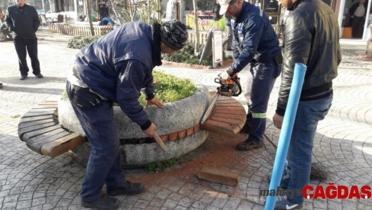 İlçe genelindeki park ve bahçelerde mesaisini yoğunlaştıran ekipler, uzayan çimlerin biçilmesi, bozuk olan aydınlatmaların tamiri gibi çalışmaları yürüten ekipler; eskiyen, yıpranan, kırılan bankları ve kamelyaları onarma, yenileme çalışmalarını yaptılar.