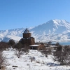 VAN (İHA) – Van Gölü'nde bulunan ve beyaza bürünen Akdamar Adası, görsel bir şölen sunuyor.