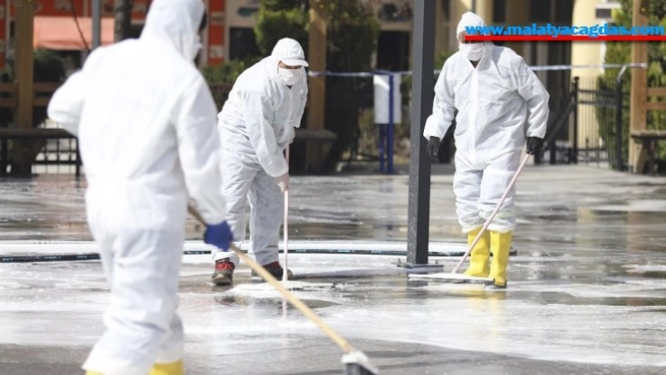 Akyurt'ta Cumhuriyet Meydanı, cadde, sokaklar ve otobüs durakları dezenfekte edildi.