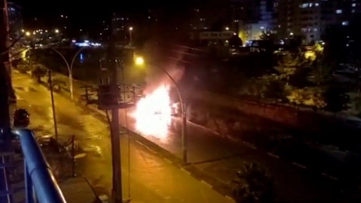 Alev topuna dönen otomobilden gelen patlama sesleri korkuttu